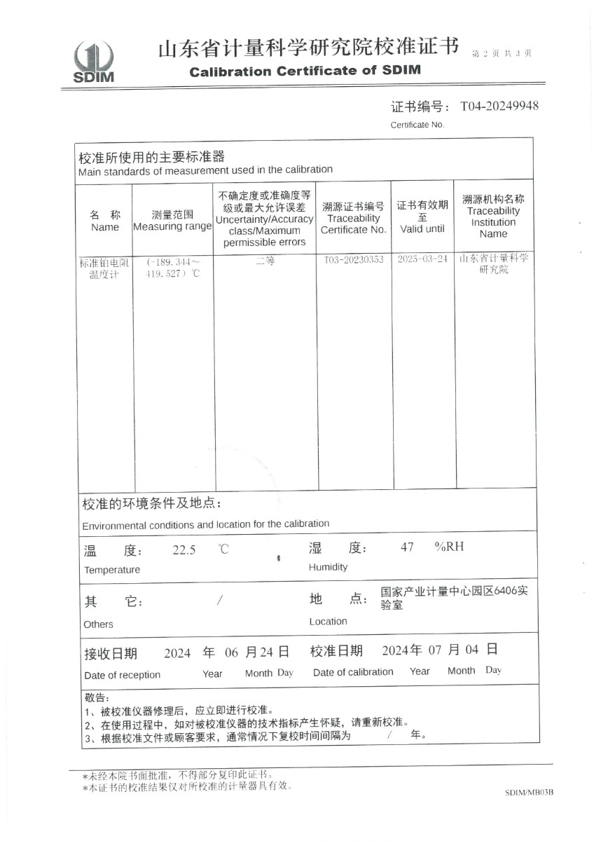 | 上一條:溫濕度檢定箱(-20~70℃)校準(zhǔn)證書 | 下一條:廉金屬熱電偶檢定爐-校準(zhǔn)證書 |