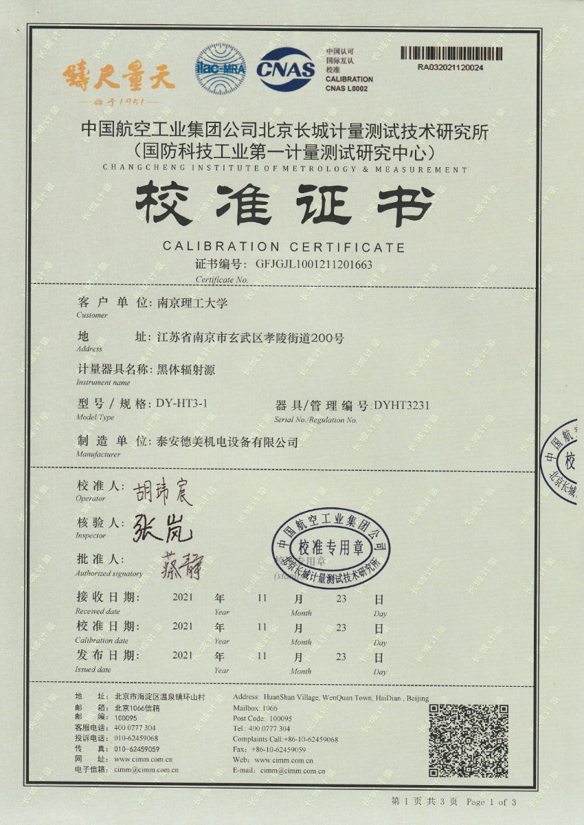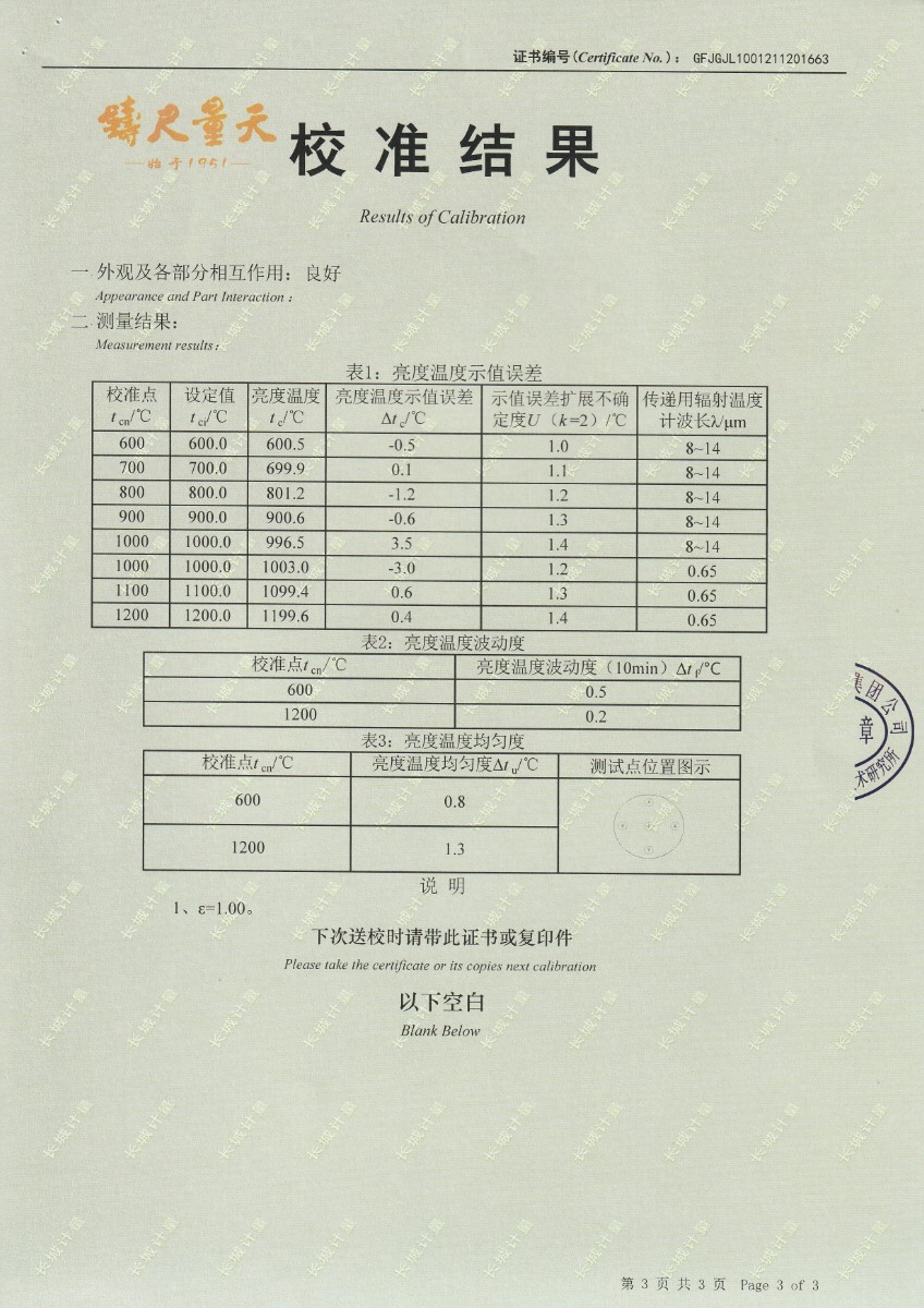 | 上一條:南京理工大學(xué)-黑體輻射源校準(zhǔn)證書350-800℃ | 下一條:廉金屬熱電偶檢定爐-校準(zhǔn)證書 |