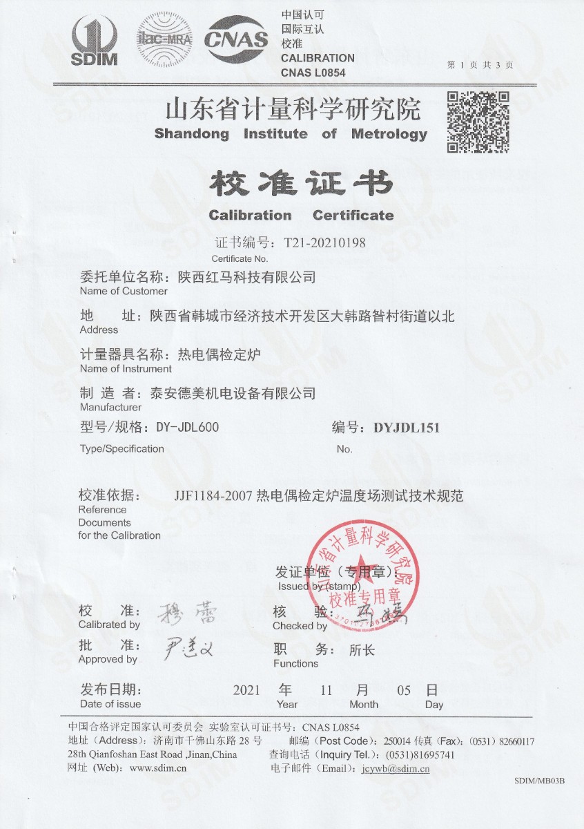 | 上一條:湖北三江航天紅陽(yáng)機(jī)電有限公司-干式溫度校驗(yàn)爐 | 下一條:廉金屬熱電偶檢定爐-校準(zhǔn)證書(shū) |