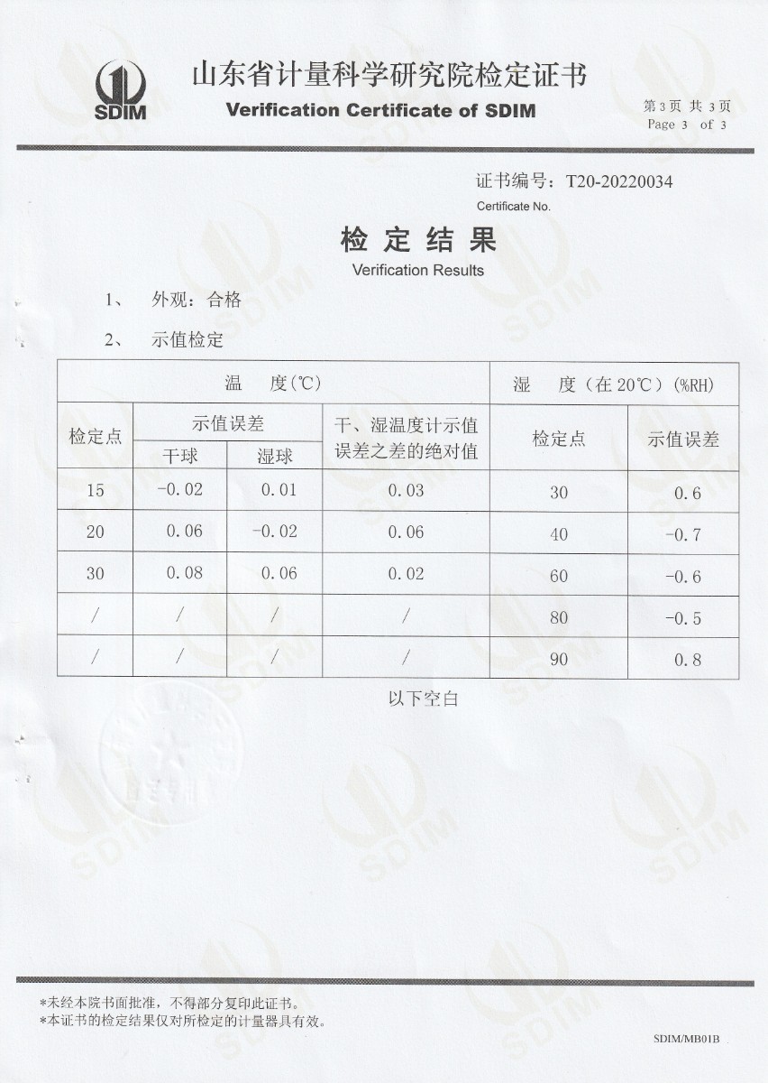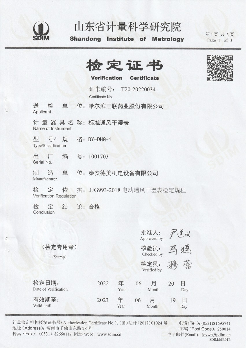 哈爾濱三聯(lián)藥業(yè)股份有限公司-標準通風干濕表