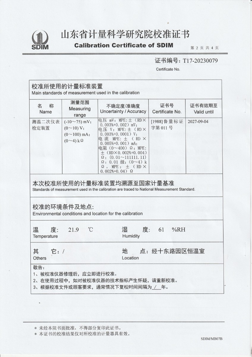 上一條:魯南中聯(lián)水泥有限公司 高精度數(shù)字溫度計 校準證書下一條:廉金屬熱電偶檢定爐-校準證書