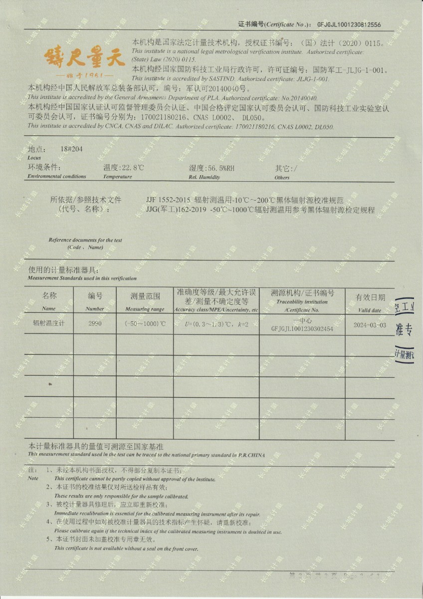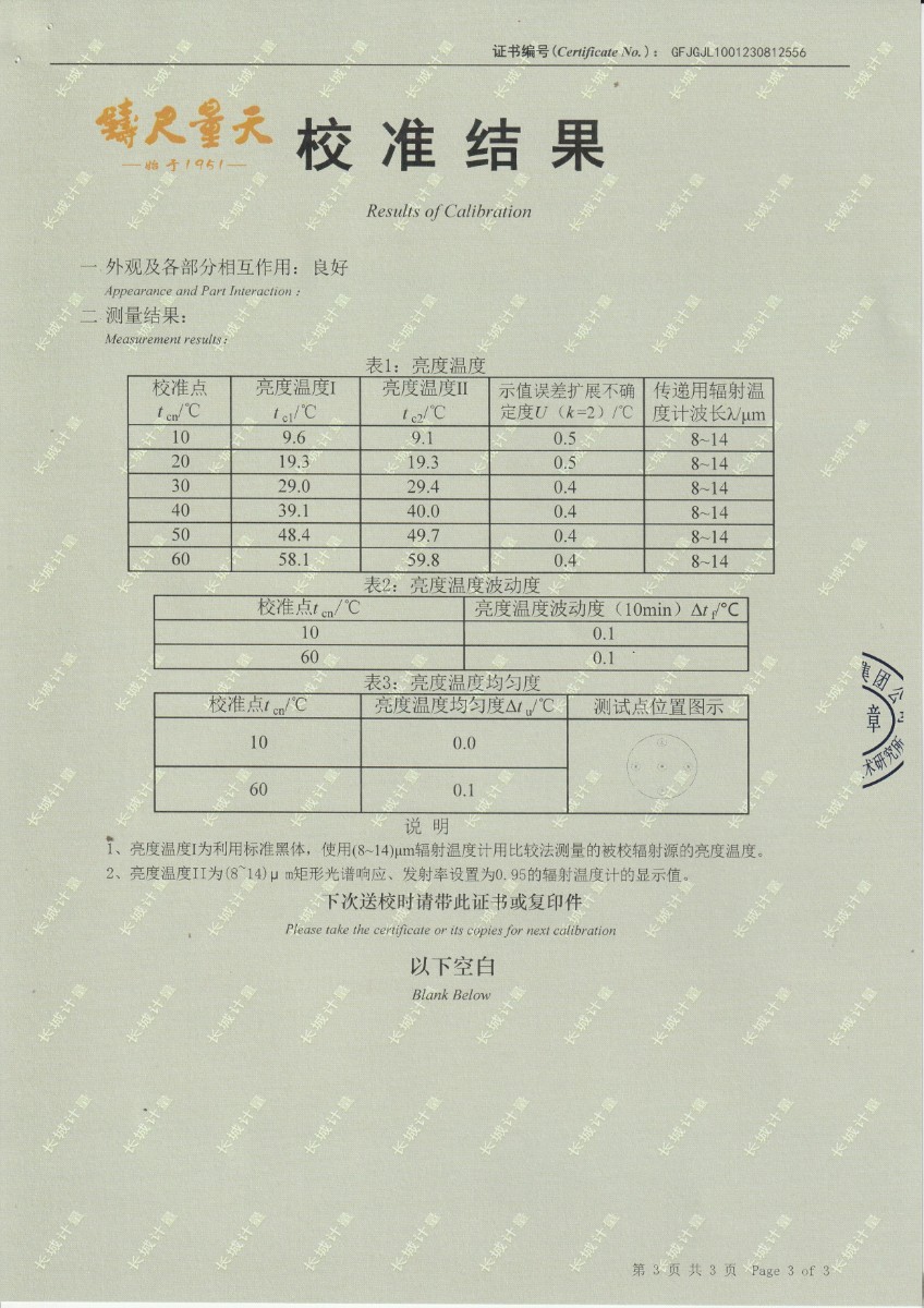 面源黑體爐DYHT1M140校準(zhǔn)證書 2023-9-20 本文被閱讀 11658 次