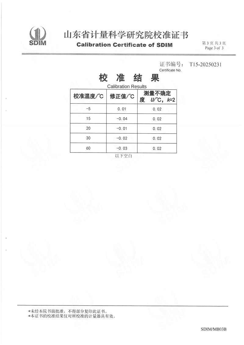 高精度數(shù)字溫度計校準證書