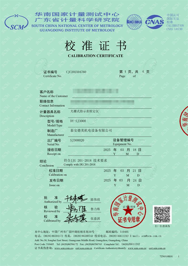 光柵式指示表檢定儀校準(zhǔn)證書 2025-4-3 本文被閱讀 4858 次