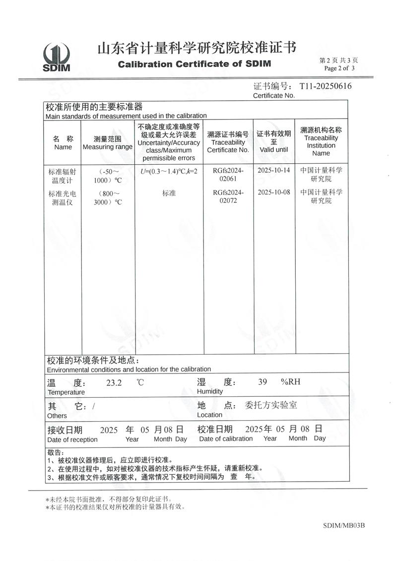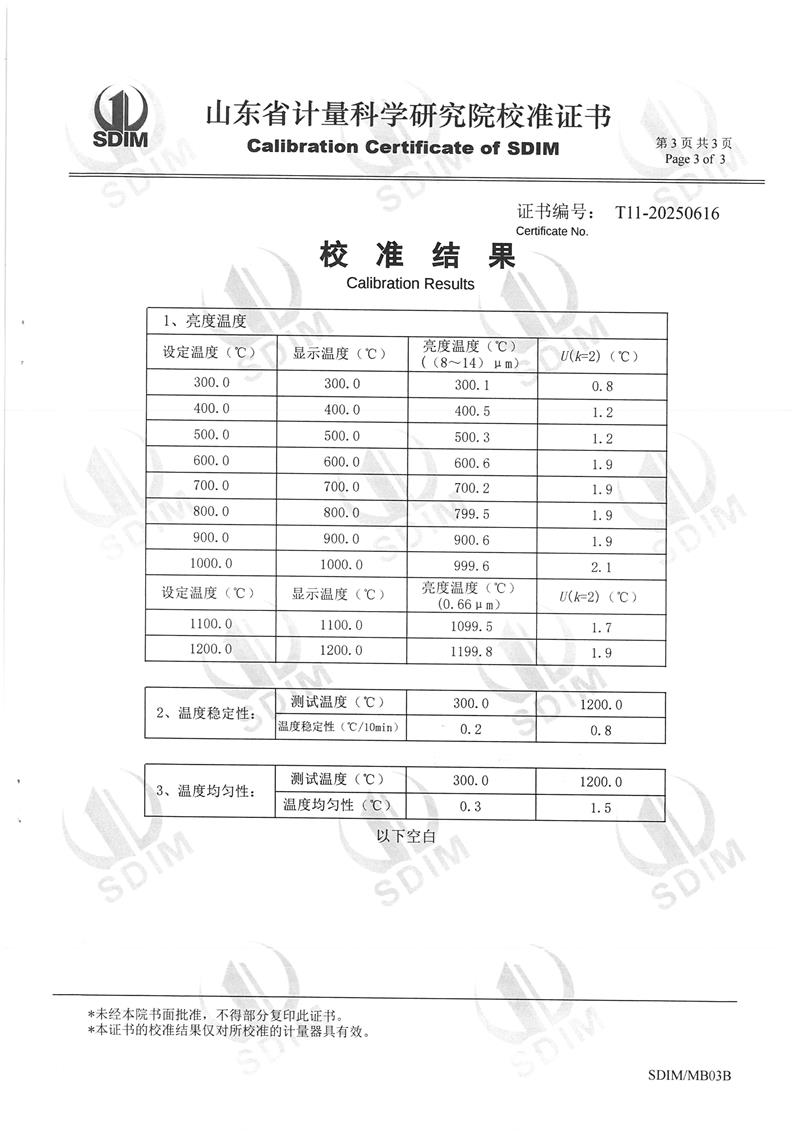 高溫黑體爐(300~1200℃)校準(zhǔn)證書 2025-5-16 本文被閱讀 4420 次