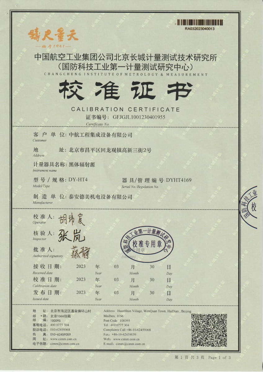| 上一條:浙江弘志計量測試有限公司 黑體輻射源 校準(zhǔn)證書 | 下一條:廉金屬熱電偶檢定爐-校準(zhǔn)證書 |