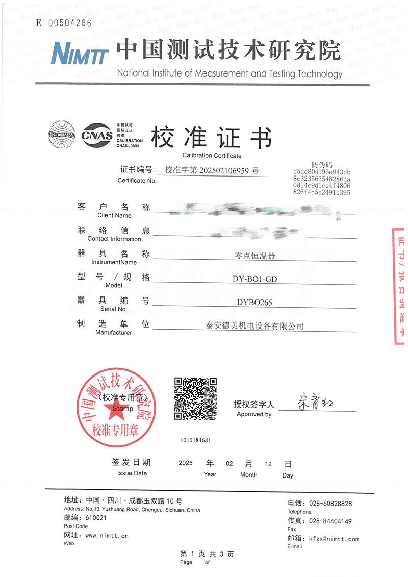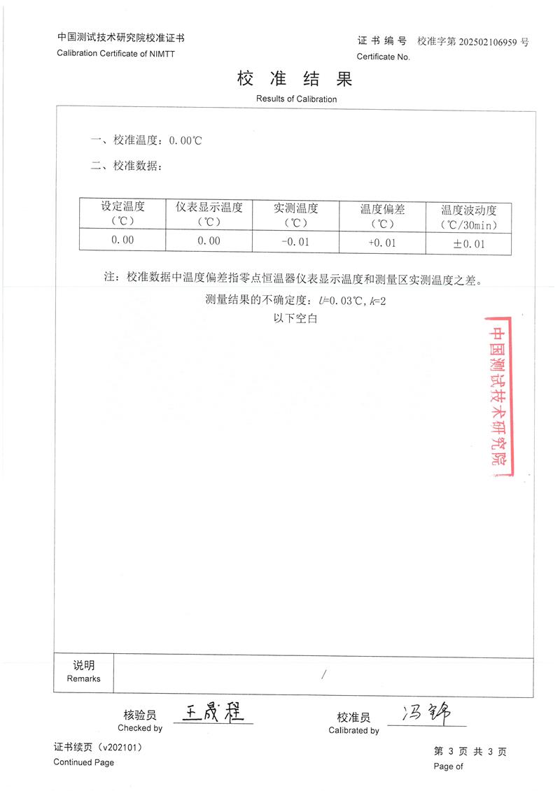 零點恒溫器校準證書 2025-3-12 本文被閱讀 4143 次