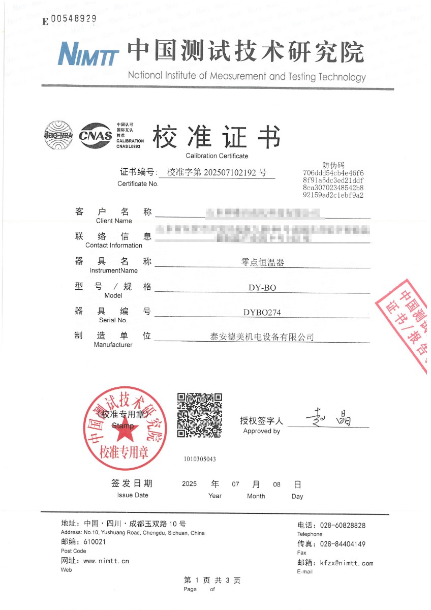零點(diǎn)恒溫器校準(zhǔn)證書 2025-7-10 本文被閱讀 3887 次