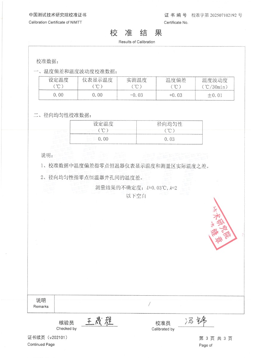 零點(diǎn)恒溫器校準(zhǔn)證書
