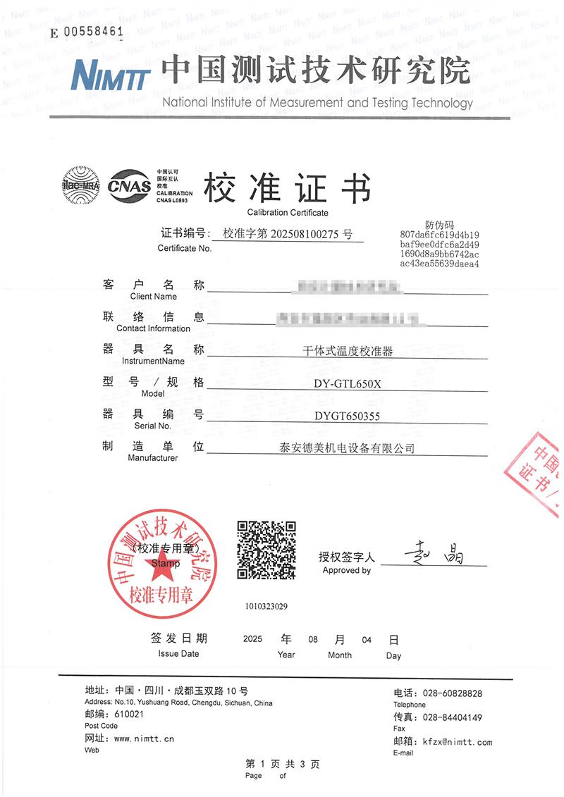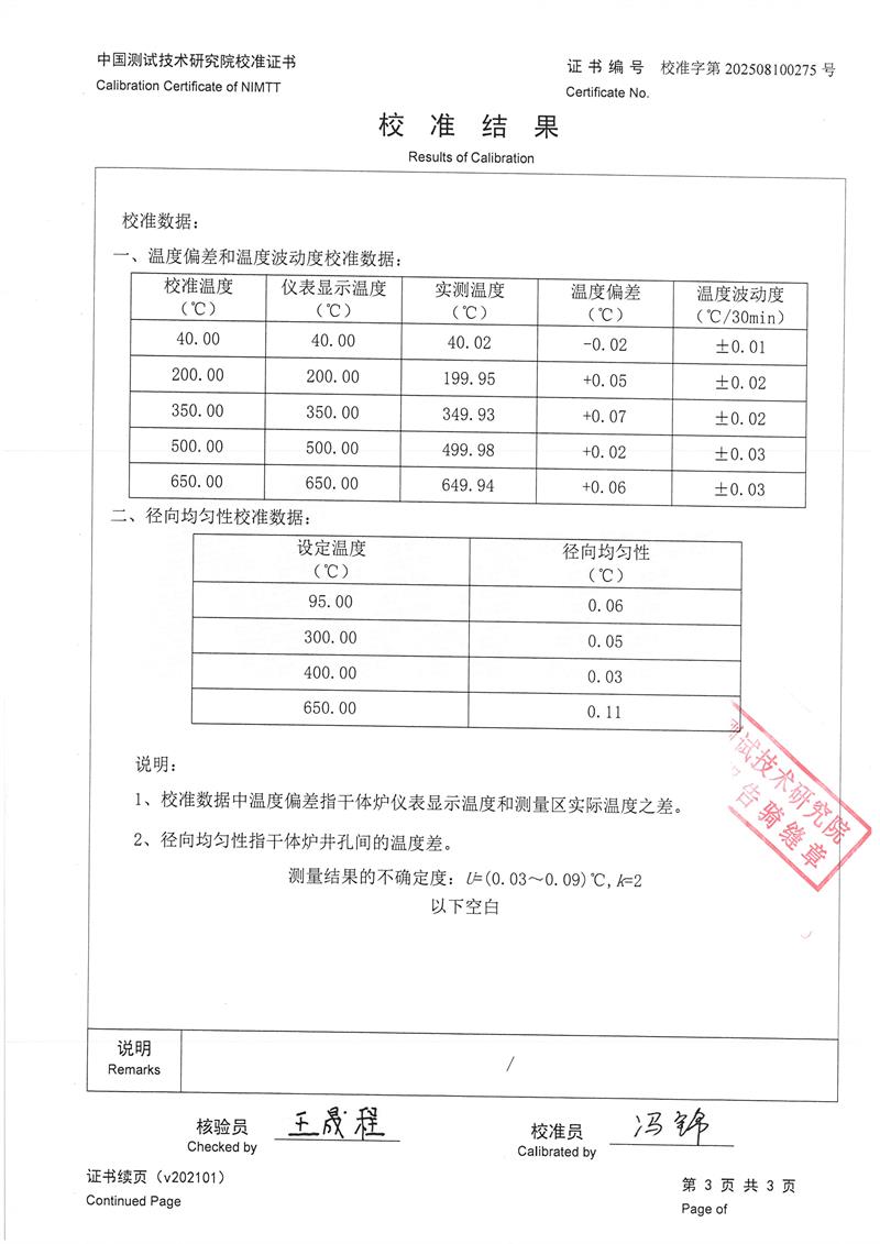 | 上一條:表面溫度計(jì)校準(zhǔn)儀(40-400℃)校準(zhǔn)證書(shū) | 下一條:廉金屬熱電偶檢定爐-校準(zhǔn)證書(shū) |