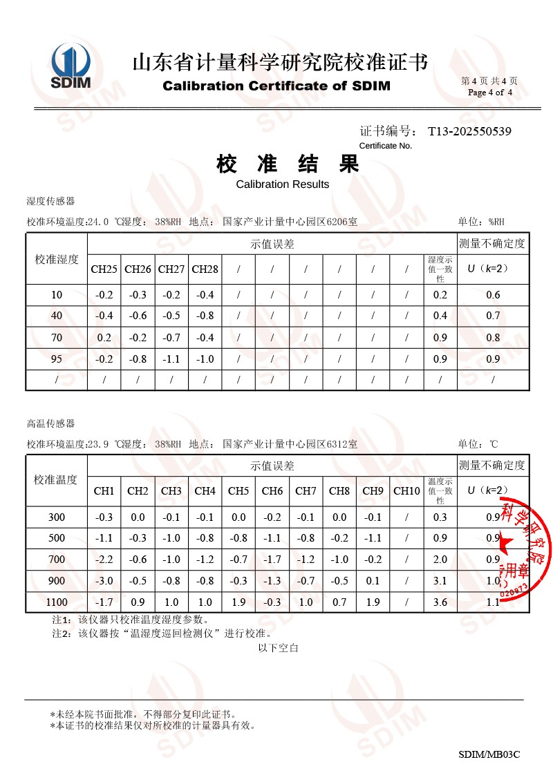 溫濕度巡檢儀測試系統(tǒng)校準(zhǔn)證書